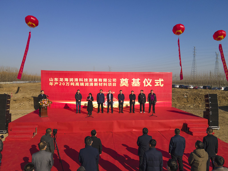 山東龍海潤滑科技發(fā)展有限公司年產(chǎn)20萬噸高端潤滑新材料項目12月19日上午隆重開工,區(qū)領(lǐng)導(dǎo)孫鋒、王孝東,區(qū)有關(guān)部門、萌水鎮(zhèn)、部分骨干企業(yè)主要負(fù)責(zé)人,及中科院蘭化所等單位來賓出席開工儀式。