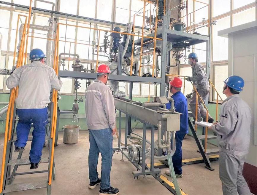 試驗(yàn)線在恢復(fù)階段可謂是困難重重,突擊隊(duì)發(fā)揚(yáng)“團(tuán)結(jié)協(xié)作,合力攻關(guān)”精神,發(fā)揮黨員的模范帶頭作用,使團(tuán)隊(duì)優(yōu)勢(shì)得到充分體現(xiàn),成員按各自的特長(zhǎng)進(jìn)行分工合作,聯(lián)合生產(chǎn)部門確定工藝流程,閥門標(biāo)識(shí);協(xié)調(diào)設(shè)備部門做好備品備件及設(shè)備修復(fù);聯(lián)絡(luò)研發(fā)部門確定實(shí)驗(yàn)原料數(shù)據(jù)配比等相關(guān)工作。在調(diào)試階段,他們不分晝夜堅(jiān)持奮戰(zhàn),極大地提升了攻關(guān)效率,最終試驗(yàn)線按期恢復(fù)完成。經(jīng)初步核算,自行改造恢復(fù)現(xiàn)有30L中試實(shí)驗(yàn)線成本支出為15萬元,遠(yuǎn)低于委外承包施工72萬元的報(bào)價(jià)。通過突擊隊(duì)的不懈努力,試驗(yàn)線在不到兩個(gè)月的時(shí)間內(nèi),已完成初步試驗(yàn)操作調(diào)整,并且完成了兩個(gè)新品種的試驗(yàn),包括熱熔膠聚酯切片合成試驗(yàn)和磨粉用聚酯切片合成試驗(yàn)。