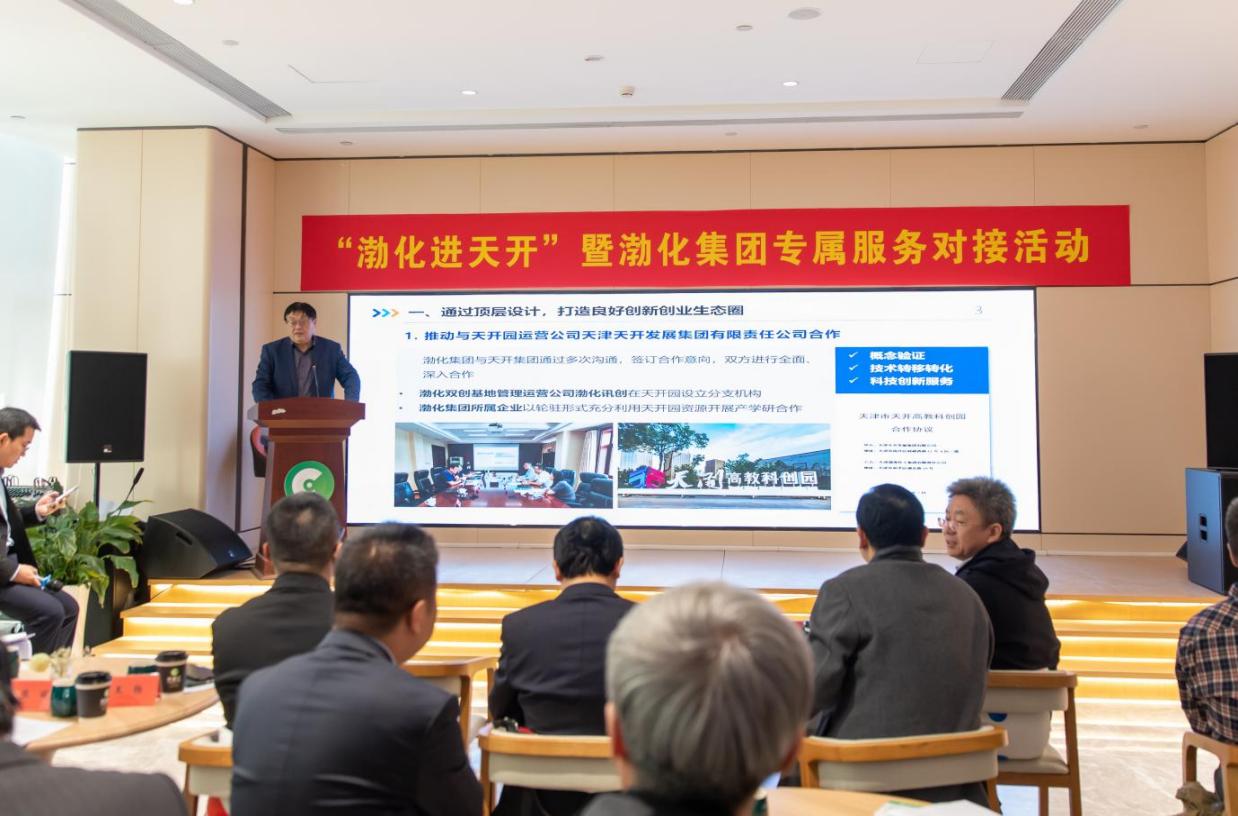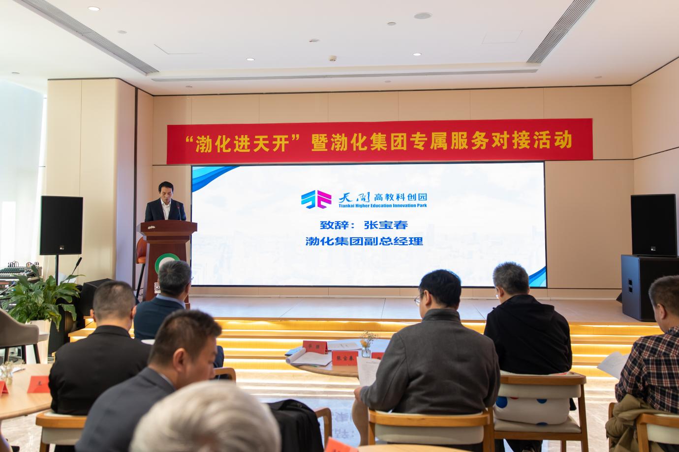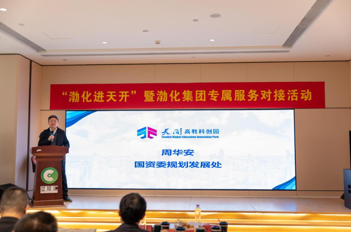 為認真貫徹市委市政府“十項行動”,更好推動天開高教科創(chuàng)園(以下簡稱天開園)高質(zhì)量建設(shè),落實落細天津渤海化工集團有限責任公司(以下簡稱渤化集團)23項高質(zhì)量提升工作,加速科技成果在津落地轉(zhuǎn)化。11月16日,在市國資委、市科技局的聯(lián)合推動下,渤化集團聯(lián)合天津天開發(fā)展集團有限公司(以下簡稱天開集團)成功舉辦“渤化進天開”暨渤化集團專屬服務(wù)對接活動,渤化集團所屬近30家企業(yè)走進天開園與園區(qū)企業(yè)深入對接交流,并舉行渤化集團分支機構(gòu)入園揭牌儀式和天開園創(chuàng)業(yè)導師聘任儀式。市國資委規(guī)劃發(fā)展處處長周華安、渤化集團副總經(jīng)理張寶春參會并致辭,市科技局營商環(huán)境處處長華強、天開集團董事長張雪穎、副總經(jīng)理王楊、市國資委規(guī)劃發(fā)展處張麗出席本次活動,渤化集團科技創(chuàng)新部、所屬二級企業(yè)和重點三級企業(yè)、天開園重點入駐企業(yè)共70余人參加本次交流對接。