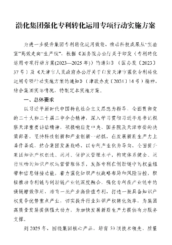 此次就《渤化集團強化專利轉化運用專項行動實施方案》(以下簡稱《實施方案》)征求意見。《實施方案》圍繞強化集團知識產權戰略布局和風險防控,強化專利在產業鏈中的強鏈增效作用,推進集團專利鏈與創新鏈產業鏈深度融合,重點落實培育一批產業高價值專利,打造一批具備知識產權競爭優勢重點產業,切實提升專利轉化效率的目標,擬定了盤活集團各企業和科研機構專利存量、推進專利情報賦能、全面提升專利質量、打通專利技術對接通道、健全專利轉化評估體系、強化知識產權金融政策利用、激發專利轉化運用活力、穩步提升專利產業化質量、構建專利轉化運用良好生態9個方面,共計22條重點工作任務。
