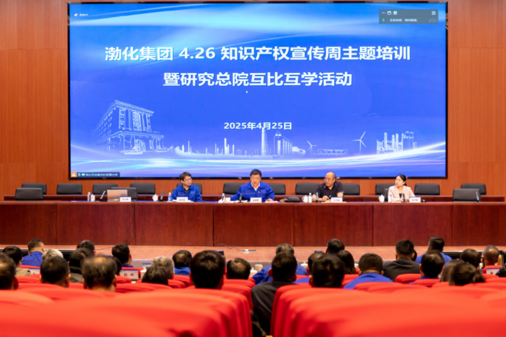 為深入貫徹落實習近平總書記關于知識產權工作的重要指示論述,進一步統一思想,加速集團科技創新、依法治企戰略部署落地見效。2025年4月25日,渤化集團科技創新部聯合企管法務部共同舉辦4.26知識產權宣傳周主題培訓暨研究總院互比互學活動。渤化集團黨委委員、副總經理張曄輝出席活動,總法律顧問(首席合規官)呂學森,副總工程師、研究總院院長武春雷,企管法務部相關人員及科技創新部全體;各二級單位主要領導,分管科技創新領導,科技創新、法務合規部門相關負責人等;研究總院副院長、各部門及分所(中心)相關負責人等共126人線上線下參加本次活動。渤化集團科技創新部部長、研究總院副院長殷伊琳主持活動。