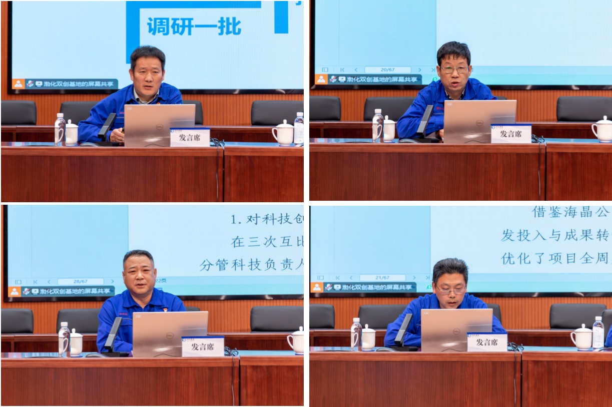 在互比互學經驗分享及提升舉措交流環節,四家單位現場分享互比互學系列活動的心得體會,其中渤化發展、渤化永利重點總結分享了在推動科技創新體系建設、科技創新項目管理等方面的經驗;精細公司、渤海化學坦誠剖析了存在的短板問題,并提出了具有針對性的下一步工作提升舉措;其他相關單位以書面材料進行交流分享。通過全方位、多形式的互比互學交流,各單位取長補短、共同進步,在集團內營造出濃厚的比學趕超創新氛圍,有助于進一步提升集團整體科技創新水平。
