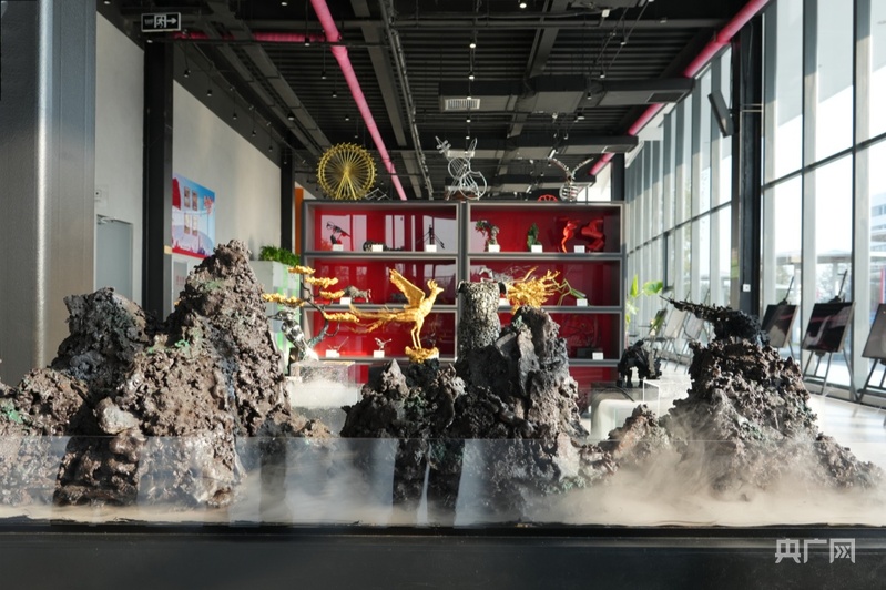 工人們用廢鋼渣等原料制作的工藝品(央廣網記者 周思楊 攝)