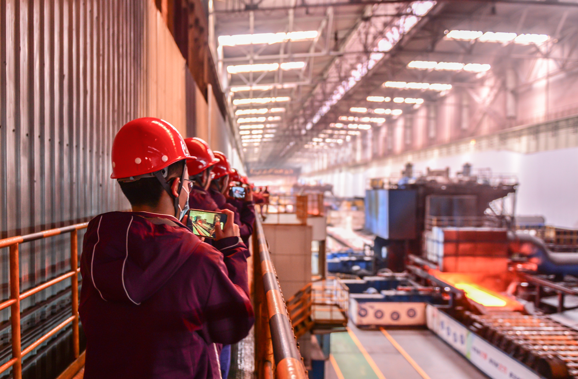在生產車間,產線正運輸著被燒得通紅的鋼材。在參觀通廊上,學生們可以“沉浸式”了解鋼鐵的鑄造過程。“我們的工業游包括生產車間、企業文化展廳以及互聯網運行中心等點位,能夠讓大家從生產、調度、管控等方面,全方位了解‘鋼鐵是怎樣煉成的’。”賈小慧說道。