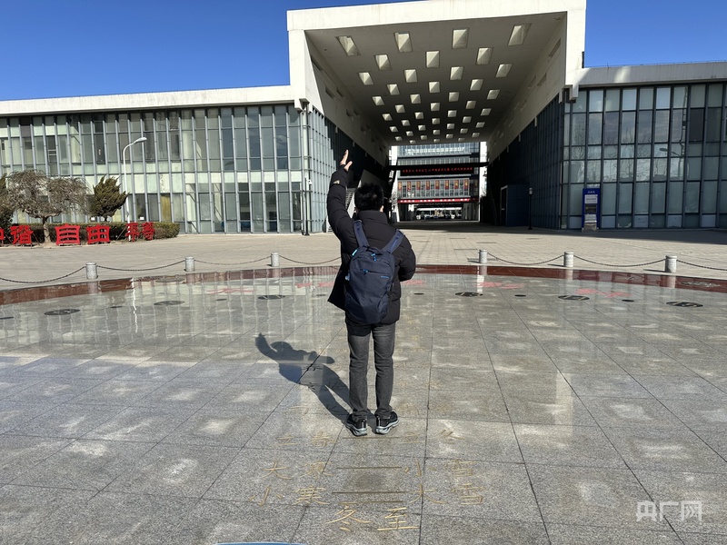 游客體驗“太陽投影鐘”(央廣網記者 周思楊 攝)